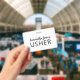 A modern script signature usher name badge for events, or theater ushers. Customize with your name. Trendy script type. Simple all purpose badge.