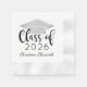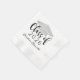 Custom paper graduation napkins feature a modern and elegant personalized design with the graduate's name, their class year in trendy black calligraphy script, and a silver gray colored grad cap.