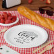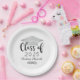 Custom paper graduation plates feature a modern and elegant personalized design with the graduate's name, their class year in trendy black calligraphy script, a silver gray colored grad cap motif, and scroll accent.