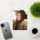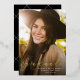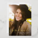 A playful but simple script graduate in foil sits at the bottom of a vertical photo. The custom text includes room for the graduate's name and also school and year details. The neutral black backer has a simple grid pattern, and the color can be changed by clicking "customize further." The center has room for graduation party invitation text or it can be left blank. Announce your graduate's accomplishment to friends and family with this design!