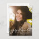 Celebrate your grad and invite guests with this vertical one-photo graduation announcement and invitation postcard that features an modern and trendy calligraphy script graduate on the front and a customizable back for your party details.