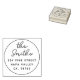 Add a personal touch to your mail with these custom address stamps. This design features your family name in modern script lettering with your address printed below in simple capitals. Around the text there is a circular frame. This is a wooden stamp, a self-inking version is available in my store. View the collection linked on this page for coordinating items or browse our store for more custom return address stamps.