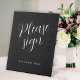 Modern script simple wedding guest book black pedestal sign