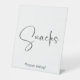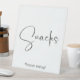 This minimalistic script Snacks Pedestal Sign is the perfect way to celebrate your bridal shower in style. Features elegant and modern typography. You can personalize this design by clicking on "Personalize this template" or if you wish to change the font, background colors or arrange the design elements in a different way you can click on "Edit using Design Tool".