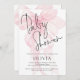 Modern Script Soft Pink Bow Baby Shower. Available digitally and printed. Minimalist style with a set elegant script for Baby Shower and easily personalise the rest of the text to your details. A coquette pink bow is tinted in the background with the words overlaid on top.