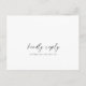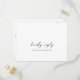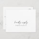 This modern script song request RSVP postcard is perfect for a minimalist wedding. The simple black and white design features unique industrial lettering typography with modern boho style. Customizable in any color. Keep the design minimal and elegant, as is, or personalize it by adding your own graphics and artwork. Build your wedding guest list and your dance floor song list all at once! This wedding response postcard conveniently asks guests if they will be able to attend your wedding, and also what song will get them to dance.