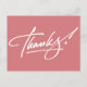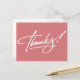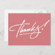 Modern handwritten script Thank You postcards in Strawberry Ice. Perfect for Weddings, Birthdays, Christmas, Showers or any other occasion. Strawberry Ice color 'Thank You' postcards, if required, choose any other color or add your own printed text, address or company name from the "Customize It" tab.