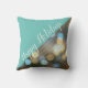 Christmas holiday throw pillow with a Happy holidays white trendy script. The half of the pillow is blue and the other half has a beautiful holiday bokeh photo and blue stripes. Great holiday Christmas pillow for a Christmas festive feeling or a gift for a family and friends. You can customize the text or erase it.