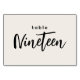 Modern Script Table Nineteen Off-White Wedding or Dinner Party Table Number. 19 is written out in a trendy chic hand-lettered font. The background color of this table number is color editable, just click the customize further button to select any color you need. A stylish yet simple design in black and off-white or any background color you choose. This table number card template makes it fast and easy to create stunning additions to your wedding ceremony and reception décor.