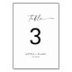 This modern script table number is perfect for a minimalist wedding. The simple black and white design features unique industrial lettering typography with modern boho style. Customizable in any color. Keep the design minimal and elegant, as is, or personalize it by adding your own graphics and artwork. The card prints on the front and back (double-sided). Items are printed exactly as they appear on your screen when you add to cart, so personalize and add each table number that you need to your cart individually.