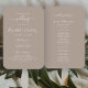 This modern wedding program fan features white script and sans serif text on a taupe background.