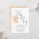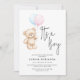 Modern Script Teddy Bear Boy Baby Shower Invitation