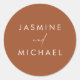 Seal your wedding envelopes with these simple and stylish envelope seals! The design features your names in modern white lettering complemented by a handwritten script with a terracotta background. These boho terracotta wedding stickers are perfect for sealing envelopes, adding to wedding favors, and more!