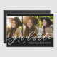 Celebrate your grad horizontal three-photo graduation announcement magnetic card that features an modern and trendy calligraphy script graduate on the front with your senior's photos.