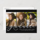 Celebrate your grad and invite guests with this horizontal three-photo graduation announcement and invitation postcard that features an modern and trendy calligraphy script graduate on the front and a customizable back for your party details.