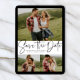 With a three photos and a modern script written "save the date" in black on a white background, this card is the perfect way to announce your engagement and upcoming wedding to friends and family. The black text is bold and modern but still sophisticated. The customizable text on the front has room for names, date, location and other information like a wedding website. The back is a matching black with a white starry speckle. More colors and styles of this original save the date by Lea Delaveris Design can be found in the collection.