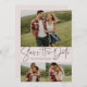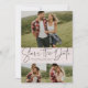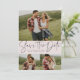 With a three photos and a modern script written "save the date" in slate gray on a blush pink background, this card is the perfect way to announce your engagement and upcoming wedding to friends and family. The white text is bold and modern but still sophisticated. The customizable text on the front has room for names, date, location and other information like a wedding website. The back is a matching pink with a white starry speckle. The color can be changed by clicking "customize further."