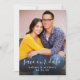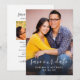 This modern save the date features elegant script typography overlaid on a full-bleed couple photo on the front, with a clean white reverse side showcasing a second photo alongside your names, wedding date, location, and website URL. The mixed serif and script lettering creates a timeless, romantic feel. All text fields are fully customizable to make it uniquely yours.