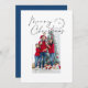 Modern script typography 1 photo Christmas holiday card. Modern blue holiday card.