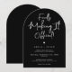 This modern wedding invitation features a sleek black design with a soft arch shape.
