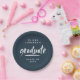 Modern script typography navy blue graduation clas paper plates