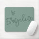 Modern minimal heart typography script sage green girly elegant simple unique personalized mousepad design.