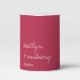 Modern Script Viva Magenta Minimalistic Wedding Pillar Candle
