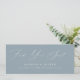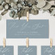 Elegant wedding seating chart header featuring the phrase "Find Your Seat" displayed in a modern white calligraphy script with a dusty blue background. Personalize the dusty blue seating chart header card with your names, wedding date, and wedding location. The design coordinates with our Modern Elegance wedding collection.