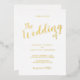 This design features title in real gold foil modern script font with wedding details in real gold foil modern sans serif font on white background.