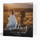 Modern, Elegant Script Personalized Wedding Memories Photo Album Binder. Customize with your favorite wedding photo (on front and back side), bride and groom’s name with cute heart and wedding date. On the spine „our wedding” in hand lettered script on black background. Use this custom binder as a wedding planner, wedding photo album, scrapbook, or give away as keepsake gifts with wedding memories for your parents, grandparents and friends.
