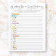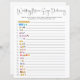 This minimalistic script Wedding Movie Emoji Pictionary game is the perfect way to celebrate your wedding or bridal shower in style. Features cute emoji bridal and wedding phrases, plus modern typography. ANSWER KEY: 1. Bridesmaids 2. 27 Dresses 3. Bride Wars 4. Corpse Bride 5. The Wedding Singer 6. Four Weddings and a Funeral 7. Monsoon Wedding 8. Father of the Bride 9. The Wedding Date 10. The Wedding Planner 11. Sweet Home Alabama 12. American Wedding 13. Love, Wedding, Marriage 14. Double Wedding 15. Runaway Bride 16. My Big Fat Greek Wedding 17. Princess Bride 18. Wedding Crashers 19. Monster-in-Law 20. Made of Honour. You can personalize this design by clicking on "Personalize this template" or if you wish to change the font, background colors or arrange the design elements in a different way you can click on "Edit using Design Tool".