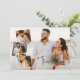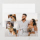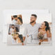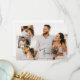 Say thank you to your wedding guests with a photo collage where you can feature four of your own lovely wedding photos. One large photo covers the entire card. Choose a photo where you have plenty of negative space on the left side. The three other photos are square and smaller. Add your names and wedding date in a modern black font. Thank you is written in a charming hand-written script. On the back you can write by hand a personal thank you message on the faintly lined background.
