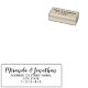 Modern Script Wedding Return Address Rubber Stamp featuring bride and groom's names in modern script font with address in modern sans serif font style.