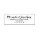 Modern Script Wedding Return Address Rubber Stamp featuring bride and groom's names in modern script font with address in modern sans serif font style.