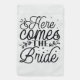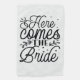 Modern Script Wedding Rings Here Comes the Bride in Black Typography design.