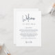 Share a welcome message for your wedding guests as well as an itinerary or schedule of the weekend's events. Front features your welcome message with handwritten script accents. Personalize the reverse side with your wedding day or wedding weekend itinerary. Perfect for including in hotel welcome bags or delivering to your guests' rooms.