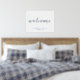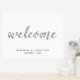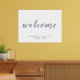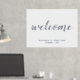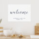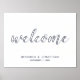 featuring title "Welcome" in real silver foil modern script font with details in real silver modern sans serif font on white background.