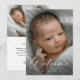 Modern Script Welcome Baby Photo Birth Details Thank You Card