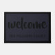 Chic, modern and simple doormat with the text welcome and your family name in black hand lettered script calligraphy and stylish typography on a navy blue background. Simply add your family name. Great gift for a new home, new homeowners or newlyweds. Exclusively designed for you by Happy Dolphin Studio. If you need any help or matching products please contact us at happydolphinstudio@outlook.com.