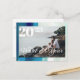 Modern Script Hello What A Year Blue and Beige Abstract Framed Photo Postcard, you can fully and further edit by clicking personalize to add your own entries and photo or click edit to crop your image or change colors or fonts.