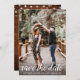 Modern Script Save The Date Engagement Announcement Photo Card - Rustic Wood Back with String Lights