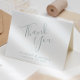 This elegant modern minimalist wedding thank you card features stylish handwriting script in sea glass green on a white background. Add the couple's names and wedding date in sans serif font.