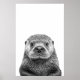 Modern Sea Otter Portrait Black White Poster