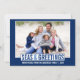 Modern Seas and Greetings Family Photo Blue Holiday Card