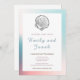 Yes, you can print on the back of your invitation for free! Most designs already have a corresponding design on the back that can be personalized using the Design Tool and going to Layers. This is a great way to communicate more information or further personalize your Modern Seashell Wedding Invitation. The option is really up to you.