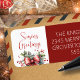 Christmas holiday season return address labels featuring modern, chic calligraphy script typography for the greeting SEASONS GREETINGS accented with a watercolor red bow and holly. ASSISTANCE: For help with design modification or personalization, resizing, transferring the design to another product or if you would like coordinating items, contact the designer BEFORE ORDERING via the Zazzle Chat MESSAGE tab or email makeitaboutyoustore@gmail.com.