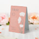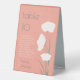 Guide your guests to the right table at your wedding, dinner party, or other special occasion with these high quality table tents! These modern 6" x 8" wedding table tent and guest names cards feature a minimalist flower design on a coral pink background with the table header and number in large letters modern letters.