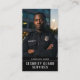 Professional security guard business cards with fully customizable text. This sleek, modern design showcases a single photograph, and is personalized with your company name, contact details and a scannable QR code. Ideal for individuals and companies, including private security firms, close protection officers, personal bodyguards, event security, and more. Printed template colors: black and white. You can also change the background color using the design editor tool. Shop the collection for more popular security product ideas and supplies for sale online.