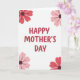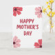 Designed with a bright white background, this Mother’s Day card keeps the focus on a big, friendly message in the middle. “HAPPY MOTHER’S DAY” sits centered in rounded, easy-to-read letters, colored a strong red that feels like a warm hug ❤️. In each corner, a large stylized flower peeks in as if leaning closer to the words, adding a gentle, caring presence without crowding the space. Two of the flowers match the red of the text, while the other two are a soft pale pink, like a quiet blush of affection 🌼. Each bloom has smooth petals and a dark circular center with fine lines that give a little texture, almost like a tender touch. The layout feels balanced and calm, with lots of open space that lets the message breathe and keeps the mood light and friendly. The flowers are partially cropped at all four corners, framing the centered red lettering on the white field.