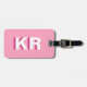 Custom pink and white block shadow monogrammed luggage tag. A stylish tag great for luggage, suitcase, laptop bag, golf bag, and more.